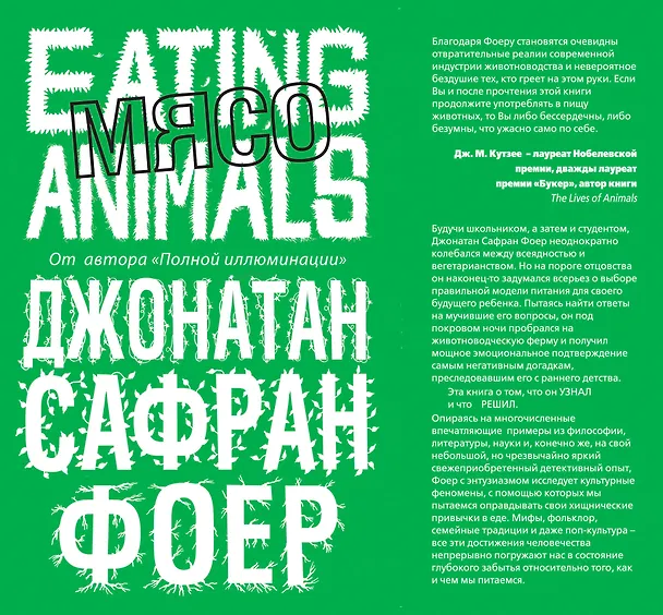 Будучи школьником, а затем и студентом, Джонатан Сафран Фоер неоднократно колебался между всеядностью и вегетарианством. Но на пороге отцовства он наконец-то задумался всерьез о выборе правильной модели питания для своего будущего ребенка. Пытаясь найти ответы на мучившие его вопросы, он под покровом ночи пробрался на животноводческую ферму и получил мощное эмоциональное подтверждение самым негативным догадкам, преследовавшим его с раннего детства. Эта книга о том, что он УЗНАЛ и что РЕШИЛ. Опираясь на многочисленные впечатляющие примеры из философии, литературы, науки и, конечно же, на свой небольшой, но чрезвычайно яркий свежеприобретенный детективный опыт, Фоер с энтузиазмом исследует кул