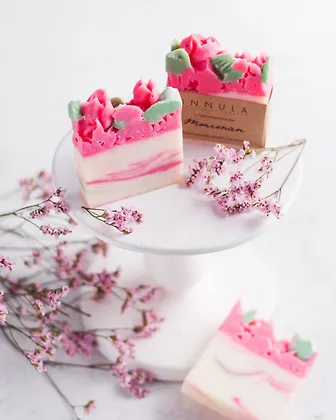 Состав: Натриевые соли жирных кислот масел: кокоса, ши, оливы, миндаля, цветочная вода (гидролат), лимонная кислота, молочная кислота, ароматика, минеральные пигменты, мика