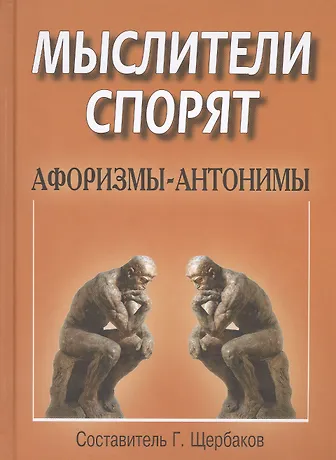 Книга, составленная литератором Г. И. Щербаковым, «Мыслители спорят. Афоризмы-антонимы» содержит немалое количество мудрых мыслей, подаренных нам великими людьми от древности до наших дней. Уникальной особенностью книги, отличающей ее от другой подобной литературы, является принцип контрапункта, положенный в основу расположения афоризмов. Два рядом поставленных высказывания опровергают друг друга. Такой подход развивает мышление и учит читателя самостоятельно находить «третью» истину, которая находится посередине противоположностей, а порой и на другом уровне, в глубине явлений и смыслов. Книга будет интересна для широкого круга читателей, любящих глубокие мысли мыслителей и парадоксы ума, п
