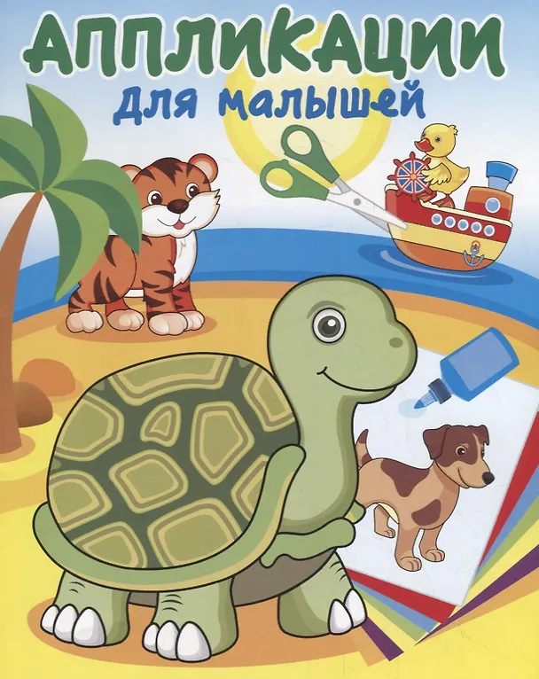 Покупал несколько книжек из этой серии для внучки. Качество нравится. Бумага не плотная и хорошо режется ножницами. Рисунки художника Кургановой добрые и милые. Детали аппликаций сравнительно крупные. В данной книжечке четыре односторонних листа с фоном для аппликаций, и четыре односторонних листа с частями аппликаций, которые нужно вырезать. Книжечка содержит фигурки черепахи, тигренка, собаки и утенка на кораблике.