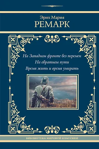 Получил книгу в подарок, очень понравилось. В сборнике представлены три книги Ремарка, действие в них происходит во время двух мировых войн и между ними. Слабонервным читать не стоит, так как довольно много описаний травм и жестокости (война, как никак), да и в целом описывает не самые приятные стороны жизни военного человека. Ремарк поднимает такие темы, как ужасы окопной войны, общественные настроения и волнения в Германии тех лет, социальная реабилитация военных, смысл жизни, искалеченной психологическими и физическими травмами и многое другое. Несмотря на мрачность тем, слог у автора легкий.