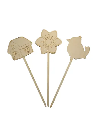 Набор-10 Украшения на шпажках (141270) (3шт) (75мм) (цветок птичка домик) (игрушка из дерева) (упаковка)