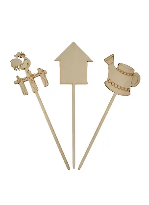 Набор-14 Украшения на шпажках (141274) (3шт) (75мм) (лейка домик забор) (игрушка из дерева) (упаковка)