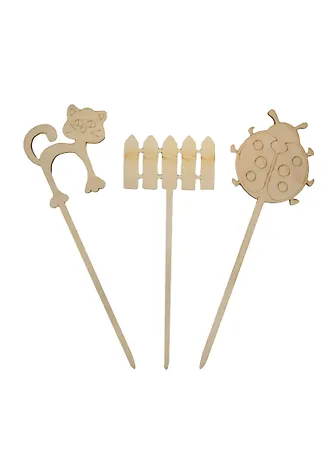 Набор-15 Украшения на шпажках (141275) (3шт) (75мм) (забор божья коровка кот) (игрушка из дерева) (упаковка)