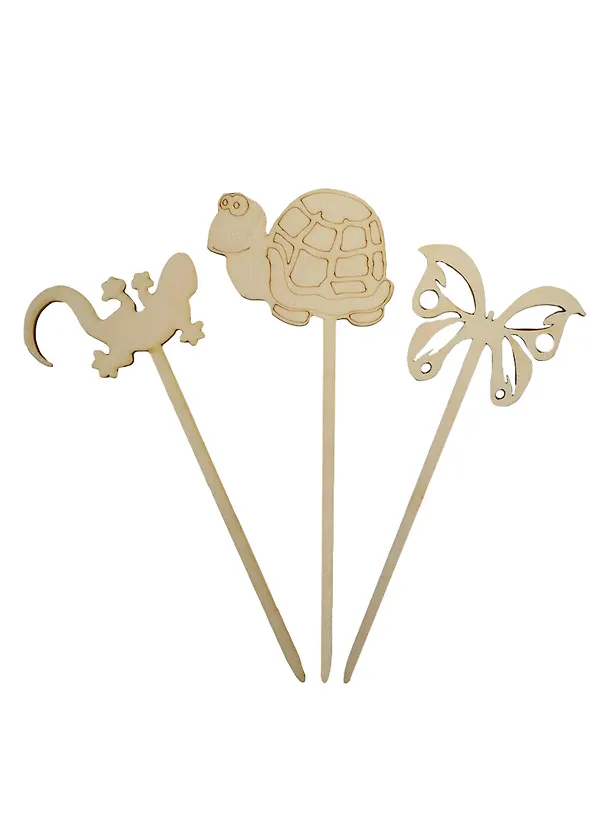 Набор-17 Украшения на шпажках (141277) (3шт) (75мм) (черепаха бабочка ящерица) (игрушка из дерева) (упаковка)