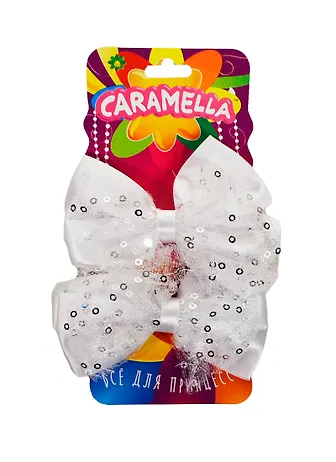 Набор 2 бантика для волос Серебро с пайетками (23935) (Caramella) (упаковка)