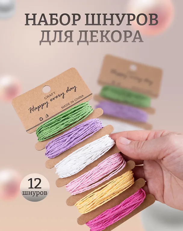 Набор (2шт) Набор шнуров для декора, (5 метров*6 цветов), целюлоза