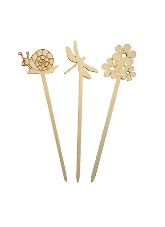 Набор-4 Украшения на шпажках (141262) (3шт) (50мм) (улитка цветы стрекоза) (игрушка из дерева) (упаковка)
