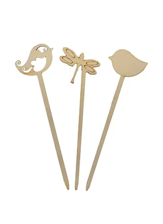 Набор-9 Украшения на шпажках (141267) (3шт) (50мм) (2 птички стрекоза) (игрушка из дерева) (упаковка)