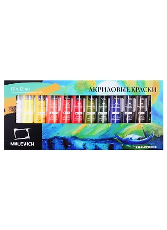Набор акриловых красок Малевич, 12 цв. по 12 мл