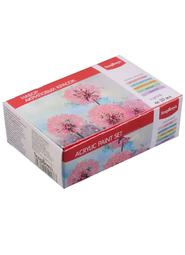 Данный набор состоит из всех основных цветов, смешивая которые между собой, можно получать любые оттенки в выбранной гамме. Акриловые краски Scrapberry's -универсальные декоративные матовые, быстросохнущие краски на водной основе, идеально подходят для декорирования бумаги, картона, грунтованного холста, дерева, керамики, металла, кожи т. п. Обладают высокой степенью адгезии и укрывистости.
