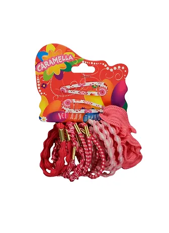 Набор аксессуаров д/волос (18845) (10 резинок+2 заколки) (розовые) (Caramella) (упаковка)