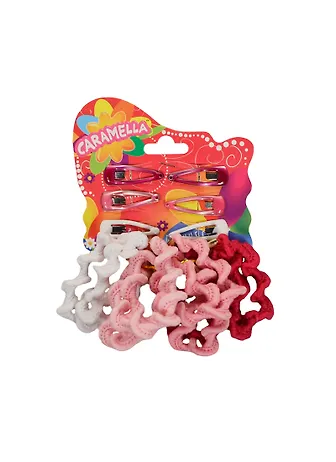 Набор аксессуаров для волос (18840) (8 резинок+6 заколок) (роз./бел.) (Caramella) (упаковка)