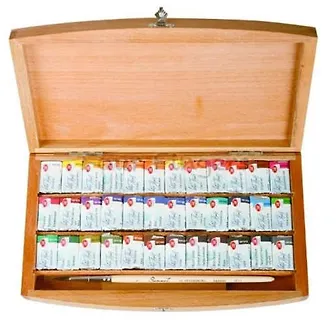Набор, акварель, Белые ночи, 36 кювет, кисть, деревянная коробка