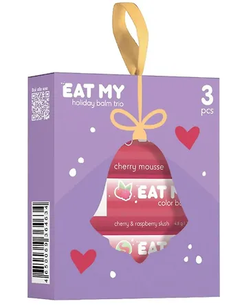 Самая чудесная часть праздника — подарки! Их приятно получать и ещё приятнее выбирать. В этом наборе вы найдёте один оттеночный и два классических гигиенических бальзама EAT MY, которыми можно порадовать себя или тех, кто тебе дорог. Мы специально подобрали ароматы так, чтобы пробудить самые сладкие воспоминания и напомнить тебе о приятных моментах. В набор вошли лимитированные и хитовые ароматы бальзамов, полюбившиеся нашим покупателям в 2024 году, с добавлением мелкого шиммера, который делает их ещё более праздничными и нарядными. Бальзам – гигиеническая помада, является основной защитой губ от ветра, мороза, солнца, переохлаждения и сухости.