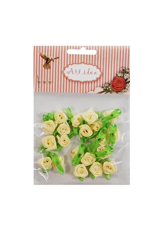 Набор бант-роза с листиками кремовый (Y-7-2) (20шт) (1см) (упаковка/хедер)