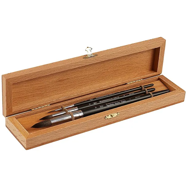Кисти 3шт белка круглая №2, №5, №9 короткая ручка, шкатулка, ЖК