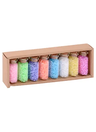 Хороший набор. Красиво и надёжно упакован, смотрится презентабельно. Флакончики наполнены до краёв и плотно закрываются. Очень удобный формат, не надо думать, где хранить бисер, ведь всё уже есть (и можно использовать флаконы в дальнейшем, что тоже хорошо). Качество бисера приличное для своей ценовой категории, он ровный, однородный, с большими отверстиями, брака почти не попадается (хотя, это может зависеть от партии). Очень приятная подборка цветов, они яркие и нежные.