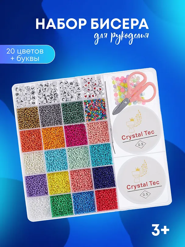 Дедушка приучил ребёнка плести бусы и браслеты из бисера и бусин. Для этого мы обычно покупали леску и разные бусины, бисер отдельными пакетиками. Я нашёл такой набор, в котором уже содержится разное количество бисера. Он располагался в отличной, практичной коробке, из-за чего его удобно хранить. Моим семейным мастерам тоже понравился набор его состав. Бисер, сказали, хороший, для своей цены, вполне себе ровный. Получились красивые бусы, дочка с удовольствием носит.