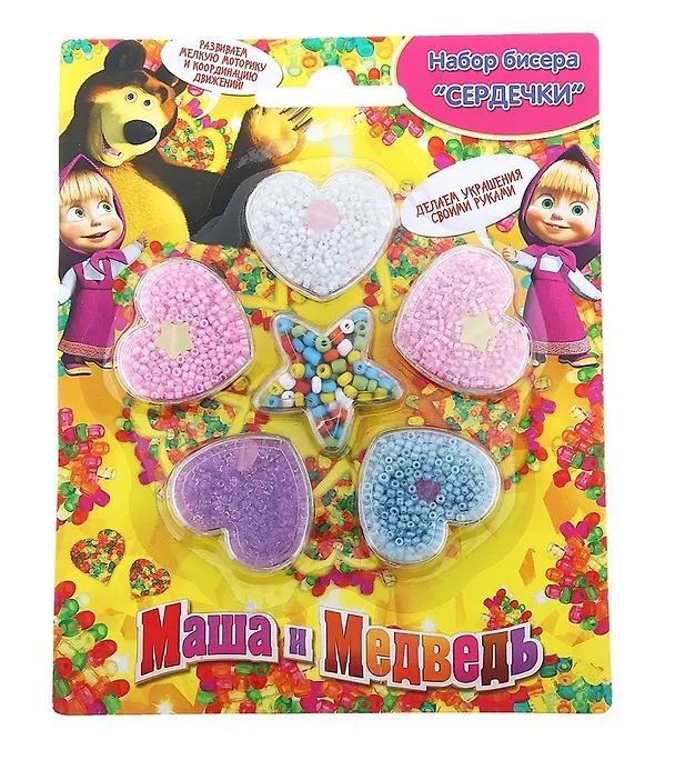 Набор бисера Сердечки Микс (19193) (776728) (Маша и Медведь) (блистер)