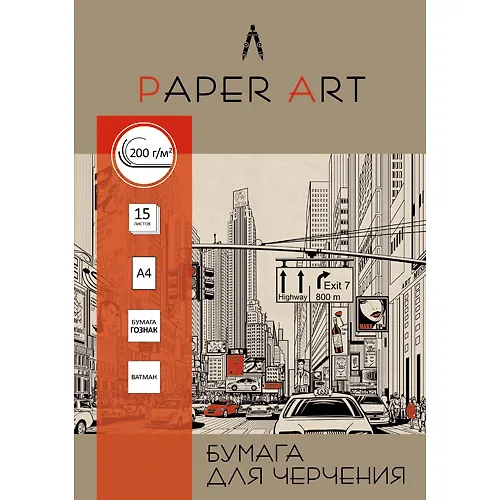 Набор бумаги для черчения А4 15л., Paper Art Город контрастов бумага ГОЗНАК 200гр/м., папка