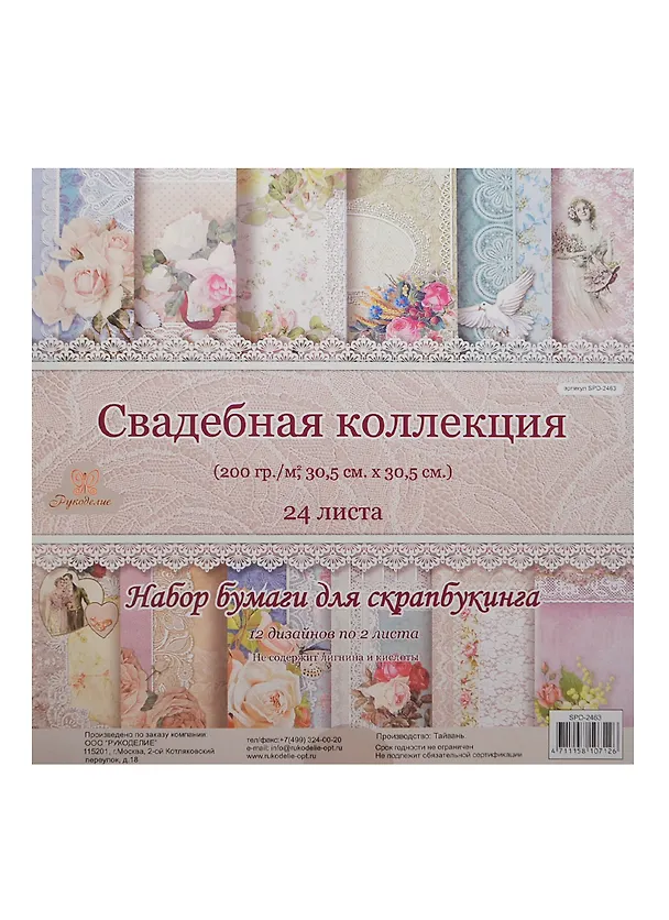 Набор бумаги для скрапбук. Свадебная коллекция 24 л. (SPD-2463) (200гр/м2,30,5смх30,5см) (12 дизайн. по 2 л.) (Рукоделие)