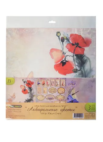 Набор бумаги для скрапбукинга Акварельные цветы (AF-001) (30,5х28,5см) (3л.)