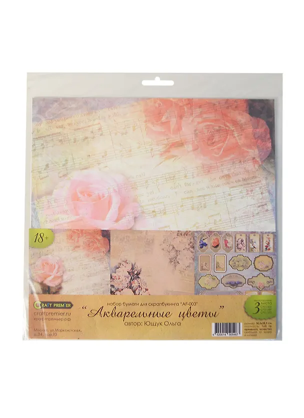 Набор бумаги для скрапбукинга Акварельные цветы (AF-003) (30,5х28,5см) (3л.)