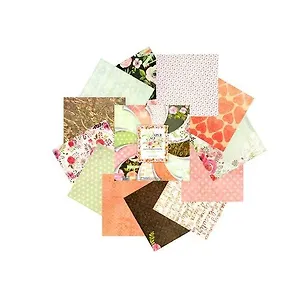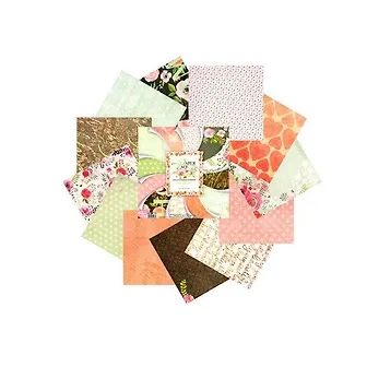 Набор бумаги для скрапбукинга Зеленый миндаль выпускается в форме блокнота со склейкой по одной стороне, листы достаточно легко вынуть целиком или если есть необходимость, можно просто вырезать необходимую по размеру фигуру. Листы плотные, матовые, с хорошей четкой печатью, с одной стороны напечатан фоновый рисунок, обратная сторона – тонированная однотонная. Отличительная особенность набора – наличие листа с фигурной вырубкой с декоративными элементами.