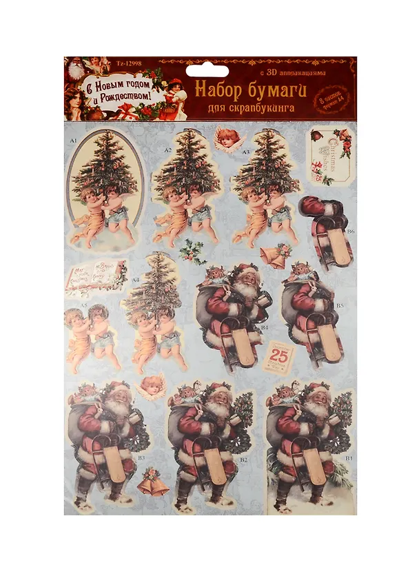 Набор бумаги для скрапбукинга с 3D аппликациями (Tz-12998) (8 л.) (А4) (3+) (упаковка)
