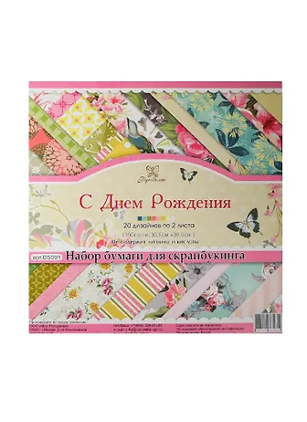 Набор бумаги для скрапбукинга С Днем Рождения 20 дизайнов по 2 листа (DS001) (160гр./м2) (30,5х30,5 см) (Рукоделие) (альбом)