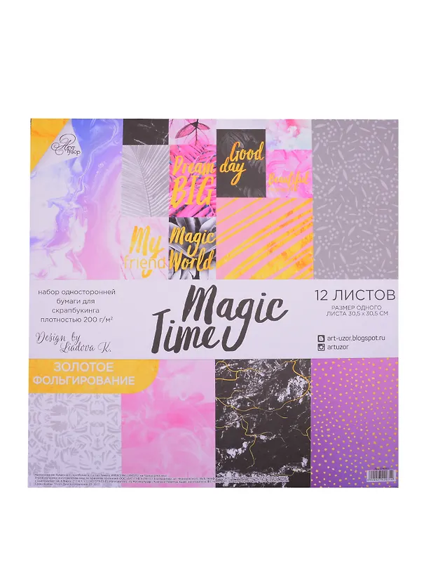 Набор бумаги для скрапбукинга с фольгир Magic time, 12 листов 30.5×30.5см 2742031