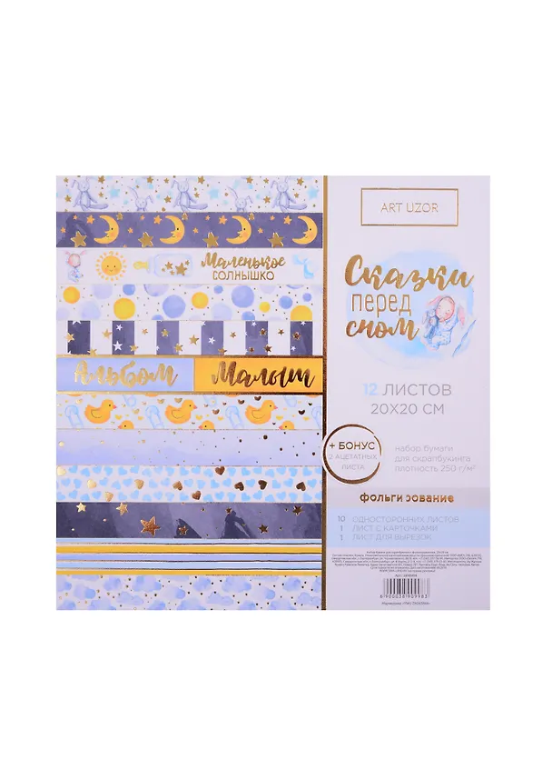 Набор бумаги для скрапбукинга с фольгир «Сказки перед сном», 12 листов, 20×20см 3890998