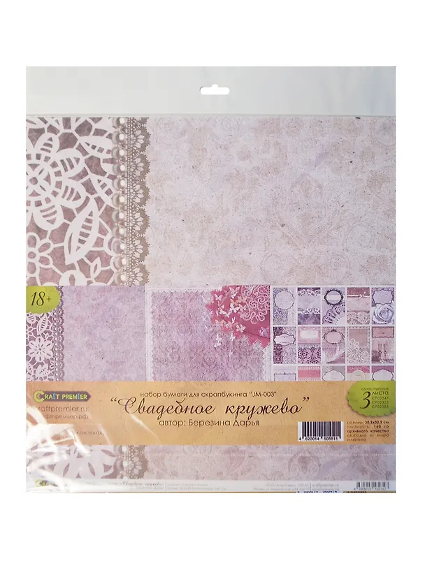 Набор бумаги для скрапбукинга Свадебное кружево (JM-003) (30,5х30,5см) (3л.)