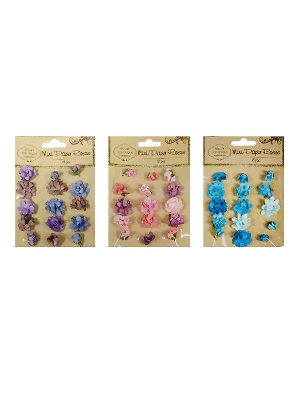Набор бумажных цветов, 15 шт, d=от 1-2см, цвета в ассортименте.