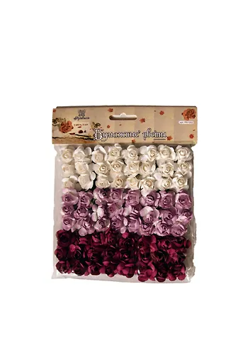Набор бумажных цветов для скрапбукинга (PR1302) (72шт) (3 цв.) (упаковка)
