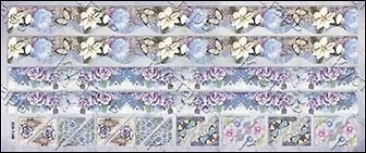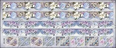 Набор бумажных наклеек с тиснением Бордюры из роз с блестками на голубом (G25112) (12х30см) (упаковка)