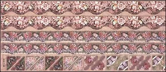 Набор бумажных наклеек с тиснением Бордюры из роз с блестками на красном (G25110) (12х30см) (упаковка)