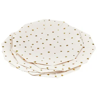 Набор бумажных тарелок Золотые звездочки (18 см) (10-угольные) (6 шт)