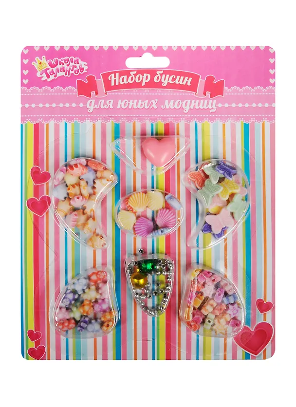 Замечательный набор для девочек. Бусинки разных цветов и оттенков, есть прозрачные и матовые, есть бусинки с перламутровым напылением, в виде цветочков, бабочек, шариков – все невероятно красивые. Бусинки довольно маленькие, поэтому нанизывание их на веревочку принесет Вашему ребенку не только удовольствие, но и пользу: набор послужит хорошим тренажером для развития мелкой моторики, координации движений, глазомера и творческого мышления.