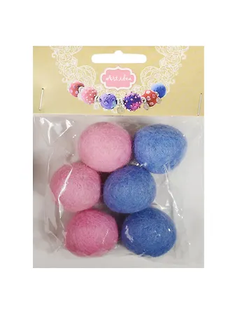 Набор бусин валяных из шерсти (3 см) (6 шт) (гол., роз.) (14-00941-J13)