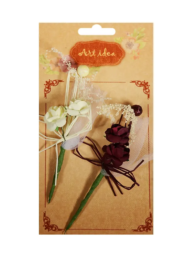 Набор бутоньерок «Розы» дополнит интерьер любого помещения, а также может стать оригинальным подарком для Ваших друзей и близких. Словно ювелирное украшение, букетик можно приколоть булавкой к платью и получить эффектную брошь - бутоньерку, или поставить в маленькую вазочку. Размер бутоньерки: 13х6,5см Размер упаковки:10,5х19,5см