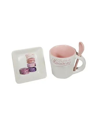 Набор чайный из 2-х предметов розовый (чашка 100мл с ложкой, поднос) в подарочной упаковке (19х11х2,5) (398-121)