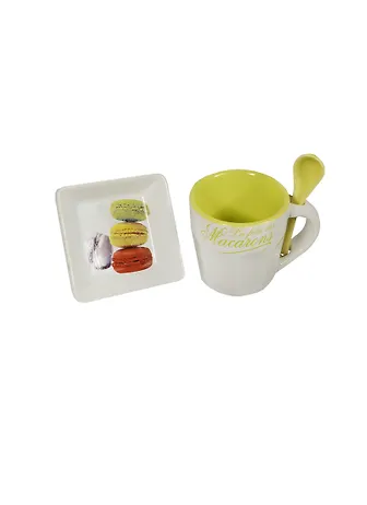 Набор чайный из 2-х предметов салатовый (чашка 100мл с ложкой, поднос) в подарочной упаковке (19х11х2,5) (398-119)
