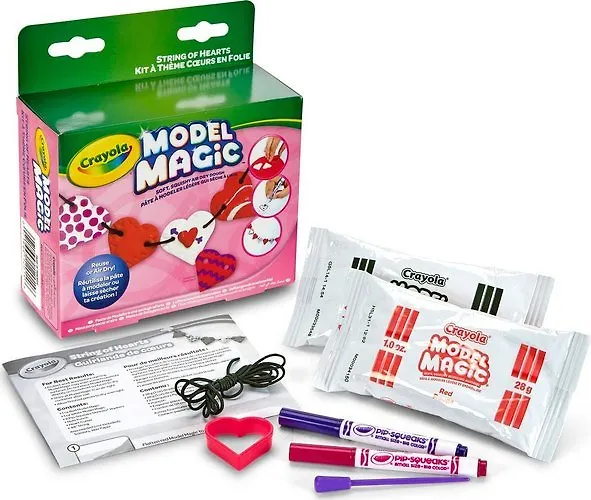 Набор волшебного застывающего пластилина «Бусы из сердечек» Crayola 57-2014 – это то, что вам нужно, если вы собираетесь пойти на праздник к юной принцессе, которой уже исполнилось пять лет. В этом удивительном наборе она найдет все необходимое для изготовления очаровательного браслета или бус из разноцветных сердечек.