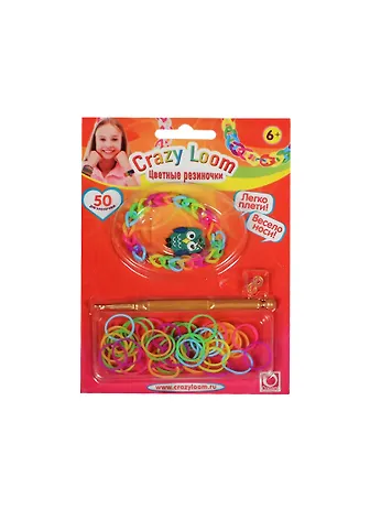 Набор Crazy Loom Цв. Резиночки (00803) (1браслет+50 рез.+1 подвеска+4 замочка+крючок) (6+) (блистер)