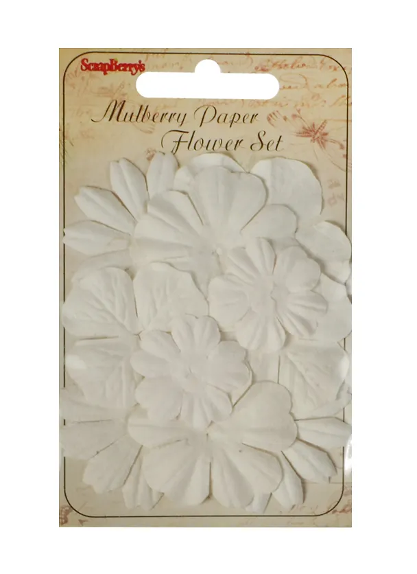 Набор цветочков белого цвета из шелковичной бумаги предназначен для декоративного оформления предметов в различных направлениях и техниках.