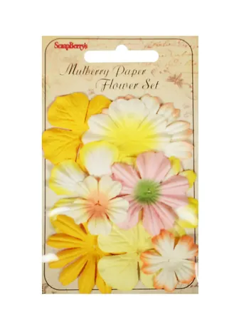 В наборе цветочки различных размеров и форм из шелковичной бумаги, которые станут отличным украшением для скрап-страничек, открыток, коробочек и т.д.