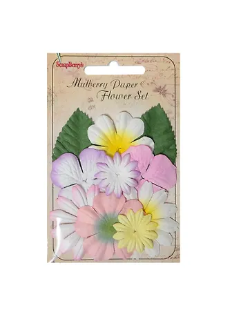В наборе цветочки различных размеров (от 2,7см до 5см) и форм из шелковичной бумаги, которые станут отличным украшением для скрап-страничек, открыток, коробочек и т.д.