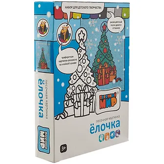 Рисование песком – это необычный вид творчества, который увлечёт не только малышей, но и их родителей. В наборе есть всё для создания новогодней картины, можно начинать! Удаляйте с картины бумагу и засыпайте липкий слой цветным песком. Панно с новогодним рисунком будет отличным подарком для бабушки с дедушкой. Работа с цветным песком развивает мелкую моторику рук, воображение и мышление.